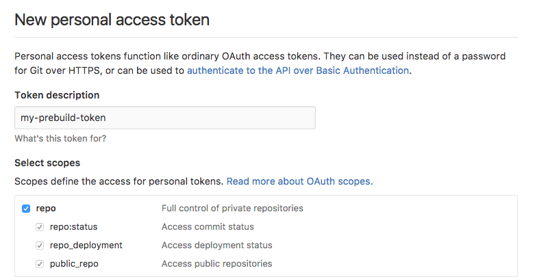 Alternatively you can specify it in the prebuild-install_token environment variable.